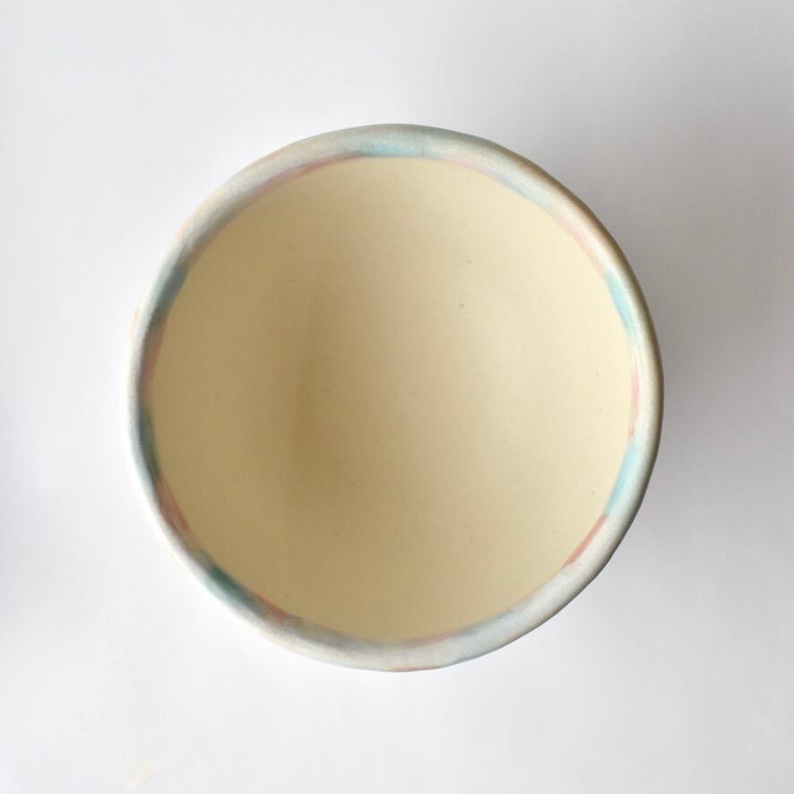 優しい色彩を施した陶器のカップです。