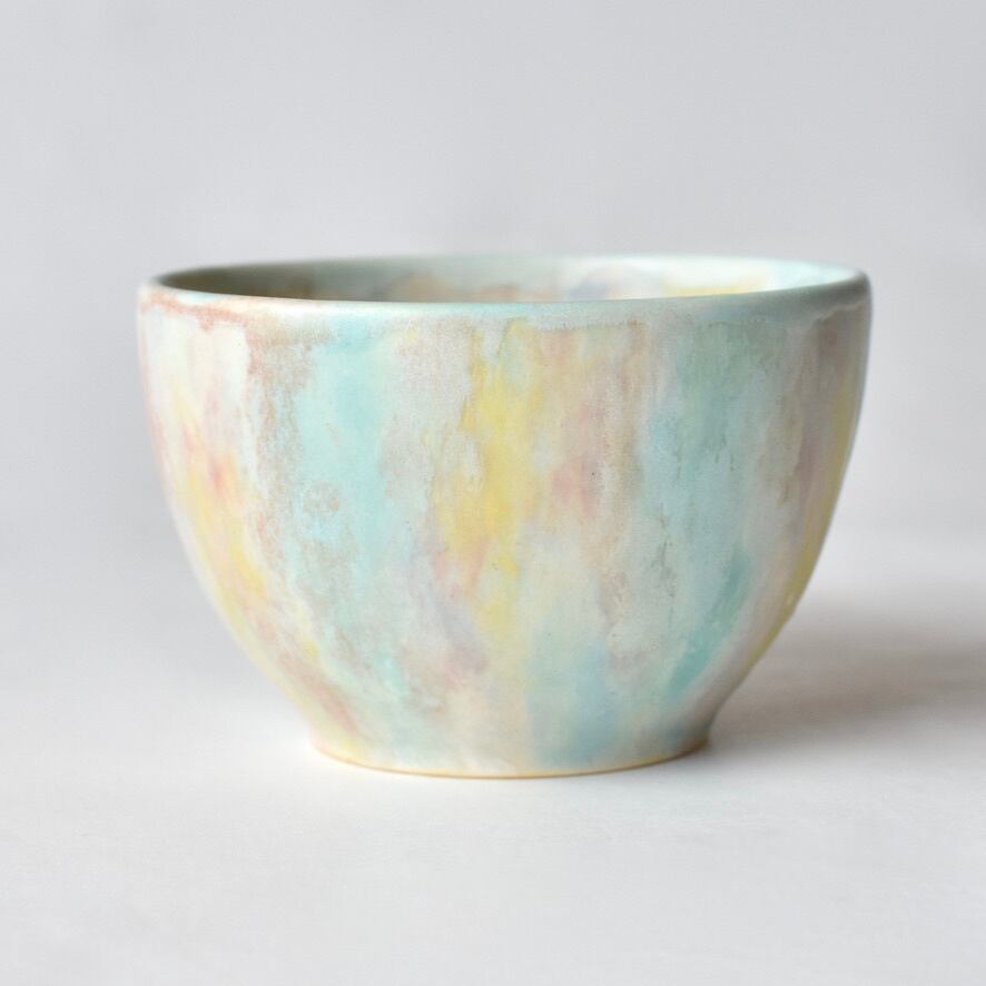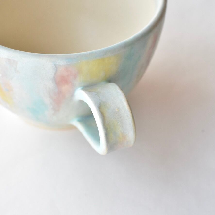 淡い色彩の様子や、側面の小さなドットの装飾など