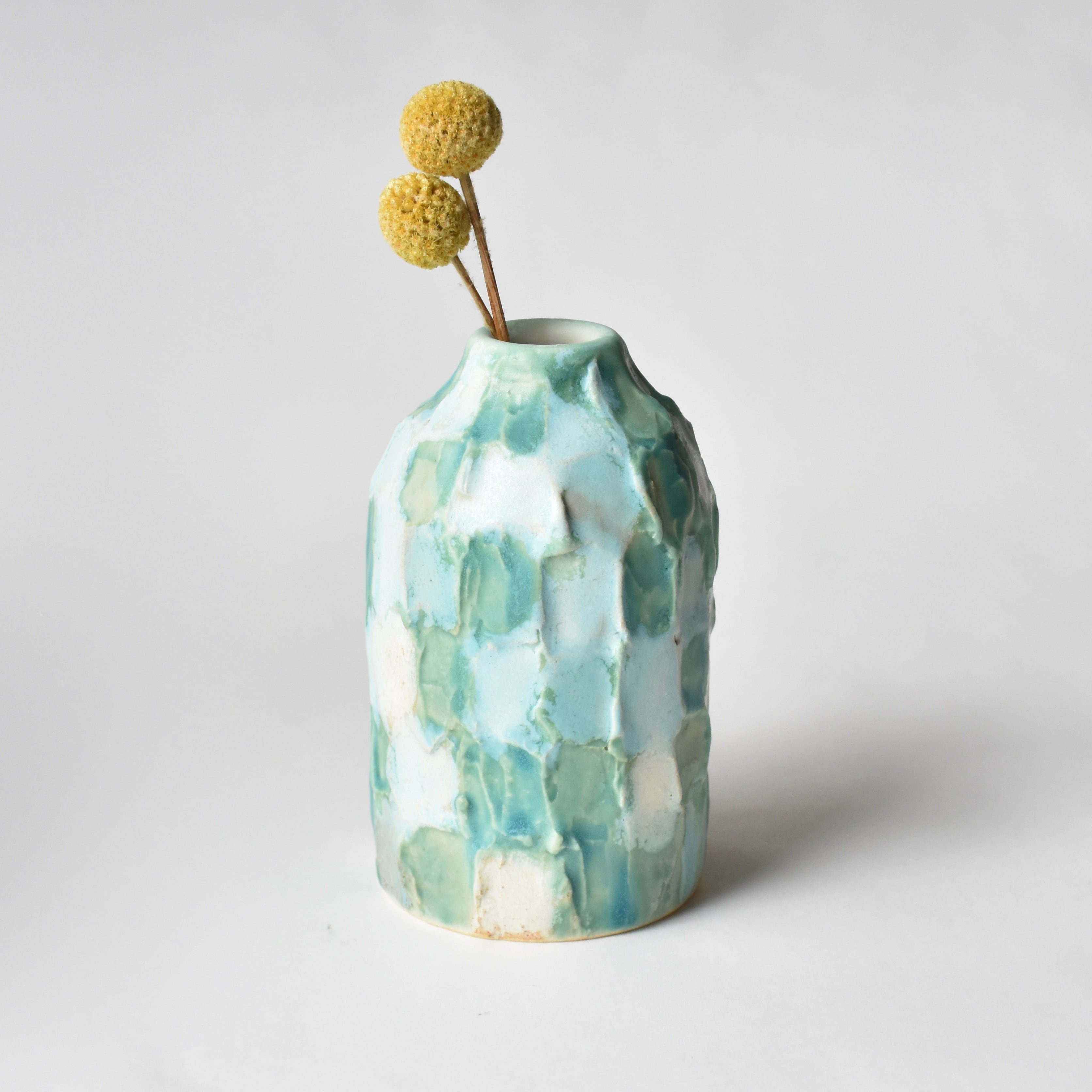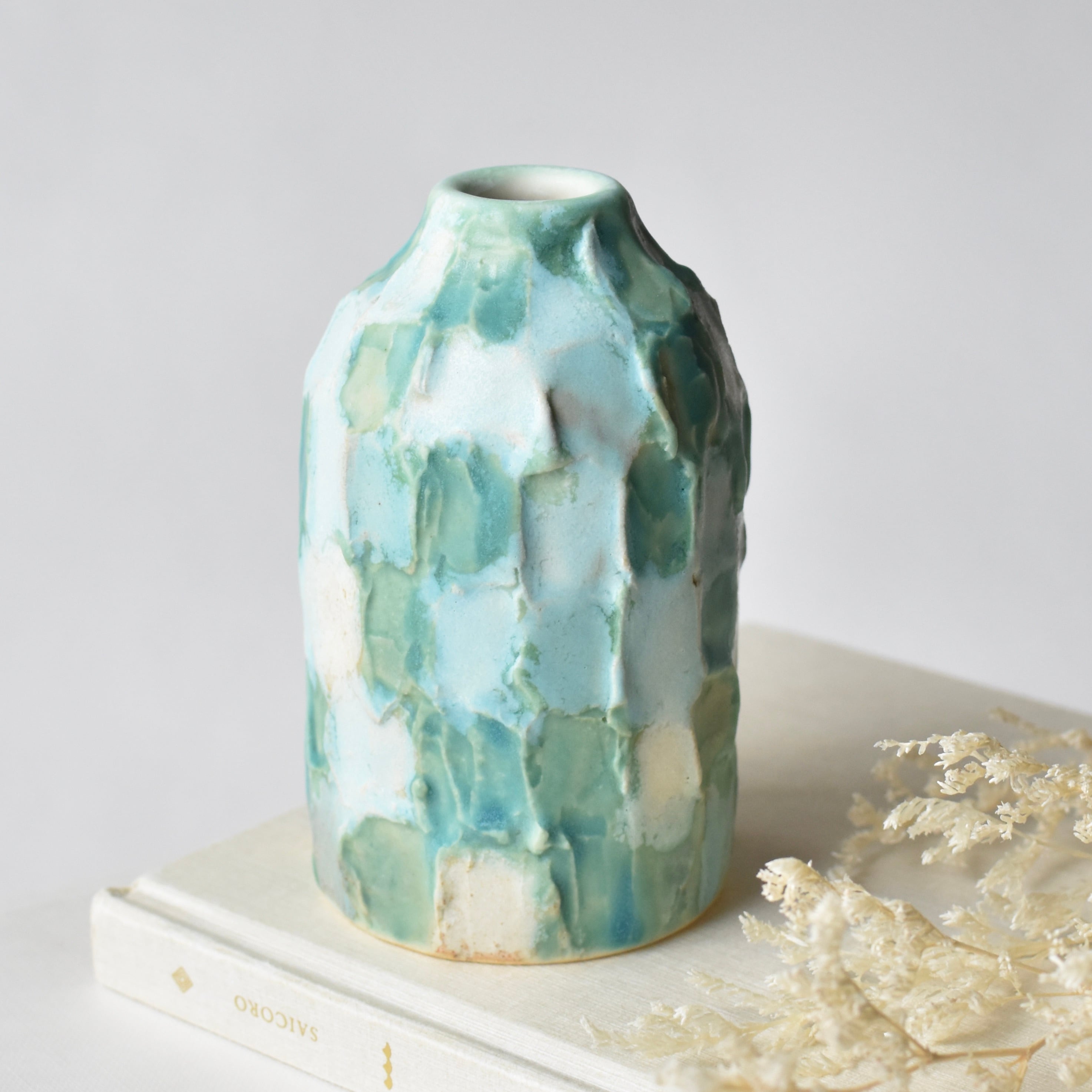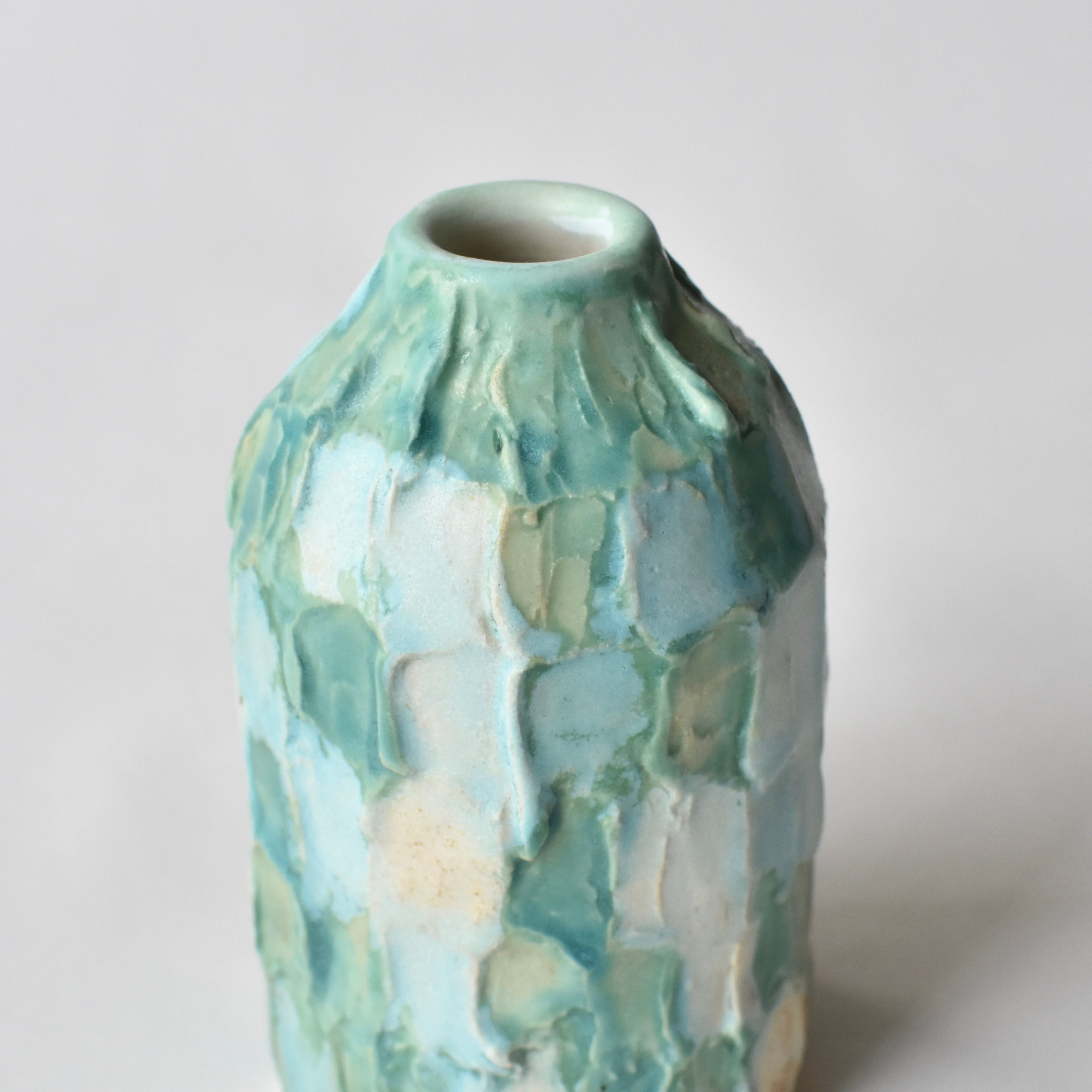 また、ピンでついたような小さな陥没(ピンホール)がみられる事があります。釉薬をかけた際、生地についた有機物が焼かれ小さなへこみとなる現象です。それらは陶器特有の現象であり、味わいのポイントとしてお楽しみください。