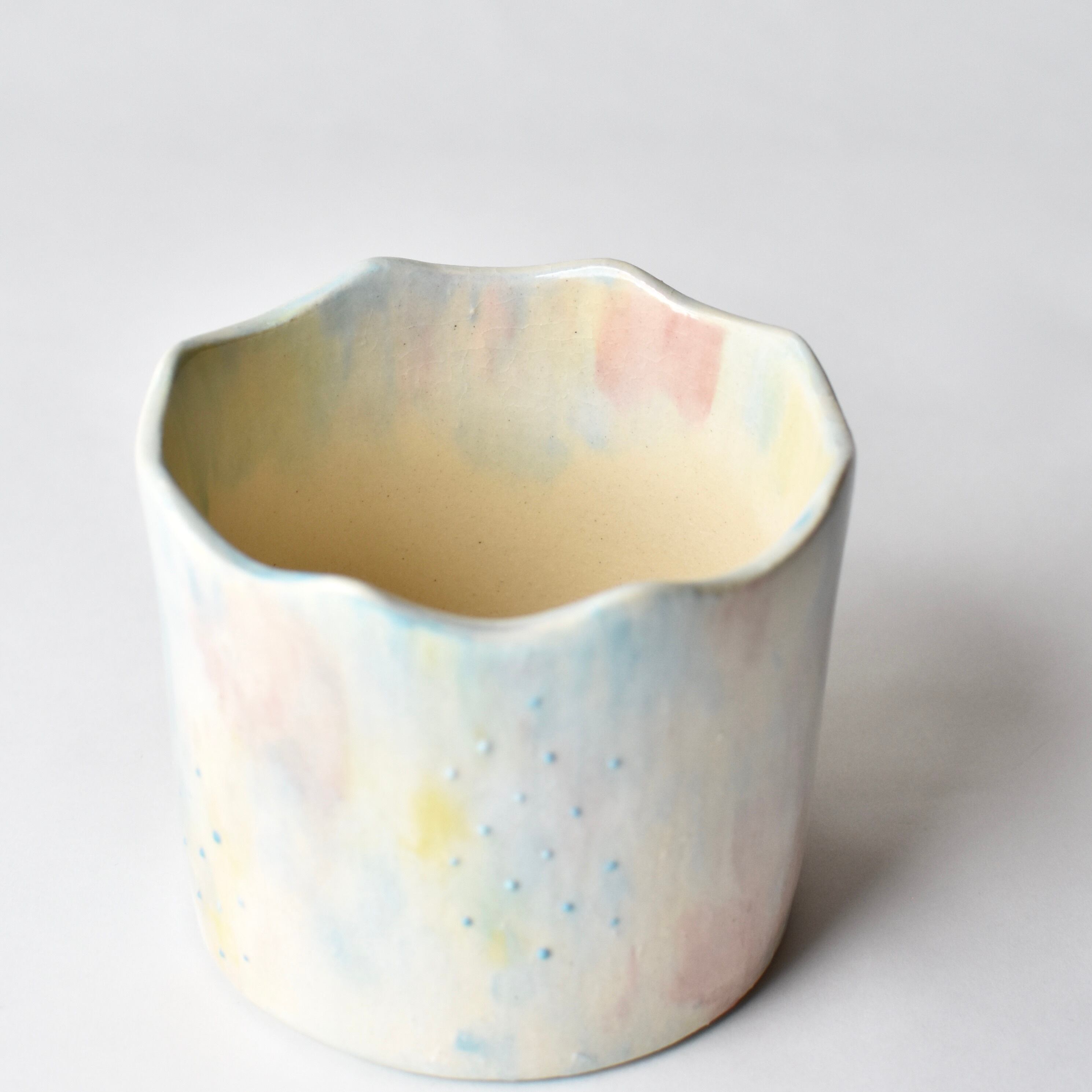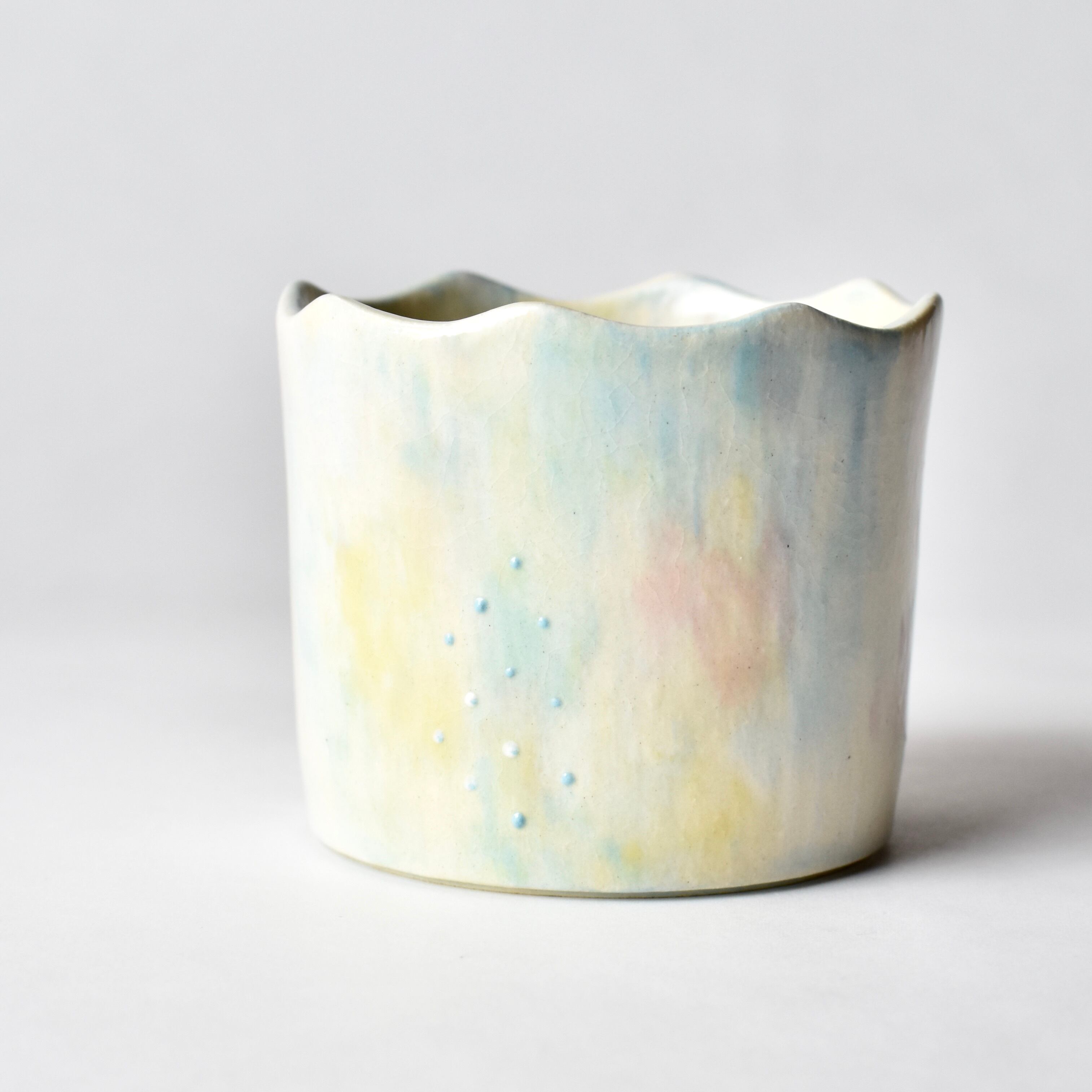 ・陶器の原料となる土には鉄分が含まれており、焼成の際に鉄分が反応し表面に黒い点となって現れることがあります。また、釉薬のかかった器には、ピンでついたような小さな陥没(ピンホール)がみられる事があります。釉薬をかけた際、生地についた有機物が焼かれ小さなへこみとなる現象です。陶器特有の現象であり、味わいのポイントとしてお楽しみください。