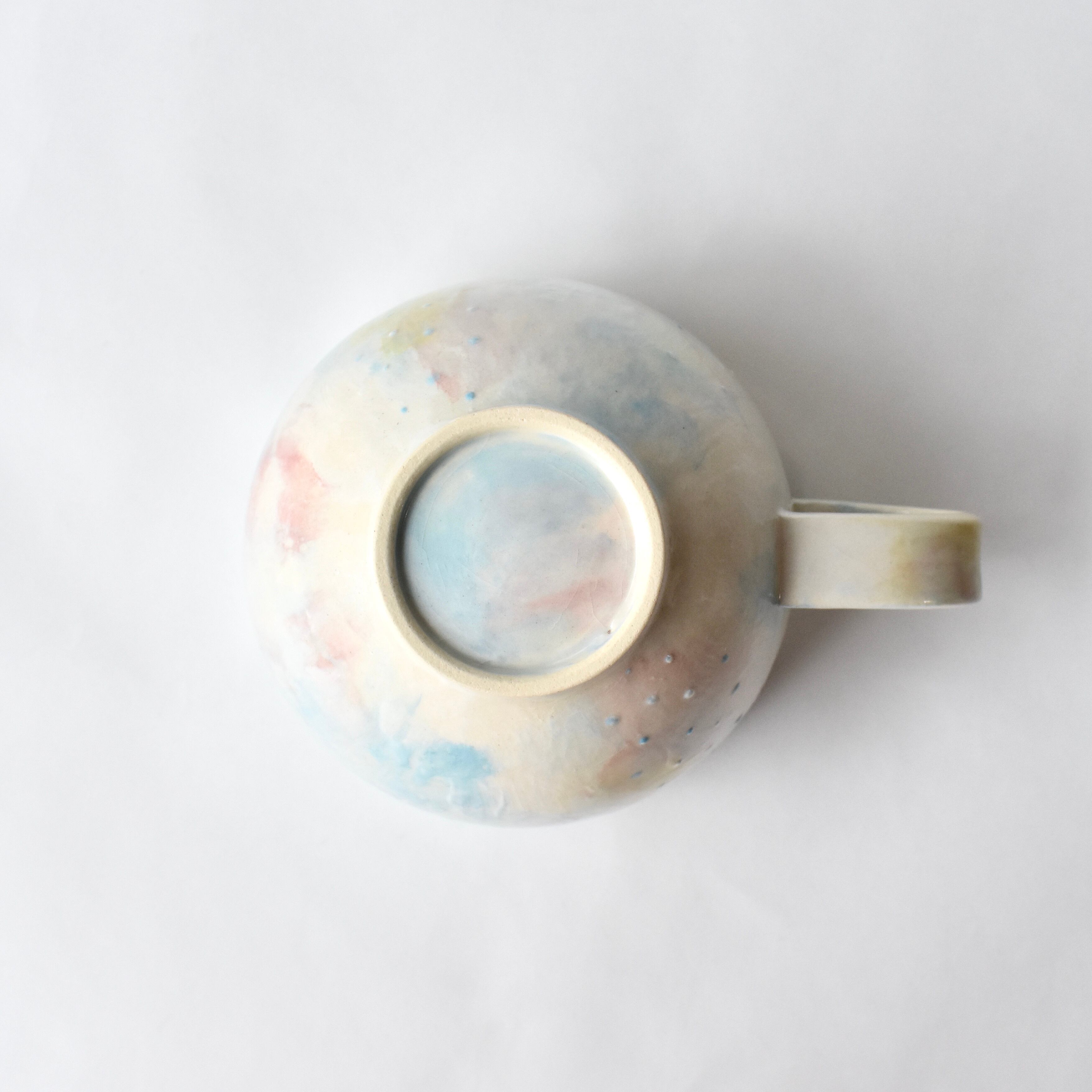 ・陶器の原料となる土には鉄分が含まれており、焼成の際に鉄分が反応し表面に黒い点となって現れることがあります。また、釉薬のかかった器には、ピンでついたような小さな陥没(ピンホール)がみられる事があります。釉薬をかけた際、生地についた有機物が焼かれ小さなへこみとなる現象です。陶器特有の現象であり、味わいのポイントとしてお楽しみください。