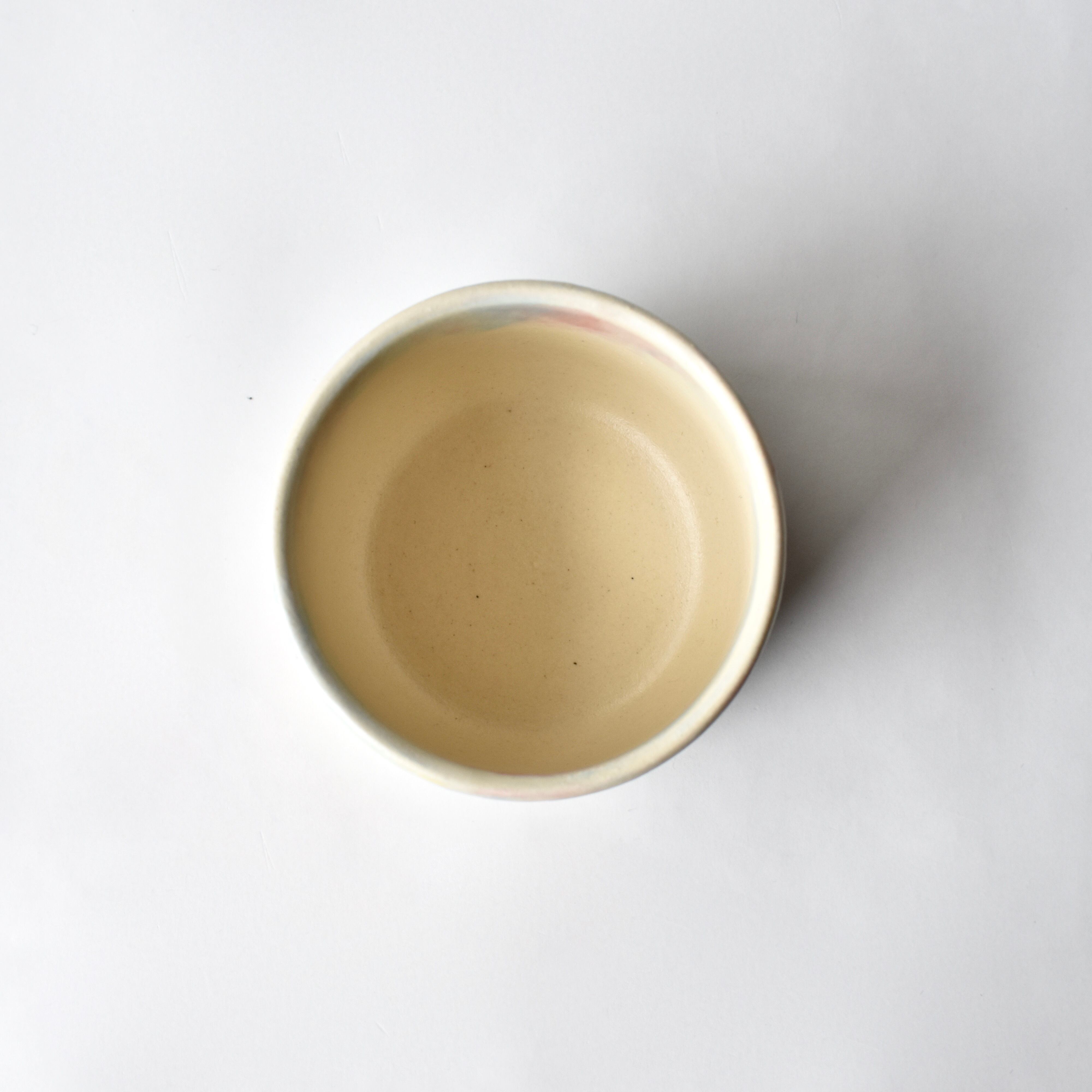 ・陶器の原料となる土には鉄分が含まれており、焼成の際に鉄分が反応し表面に黒い点となって現れることがあります。また、釉薬のかかった器には、ピンでついたような小さな陥没(ピンホール)がみられる事があります。釉薬をかけた際、生地についた有機物が焼かれ小さなへこみとなる現象です。陶器特有の現象であり、味わいのポイントとしてお楽しみください。