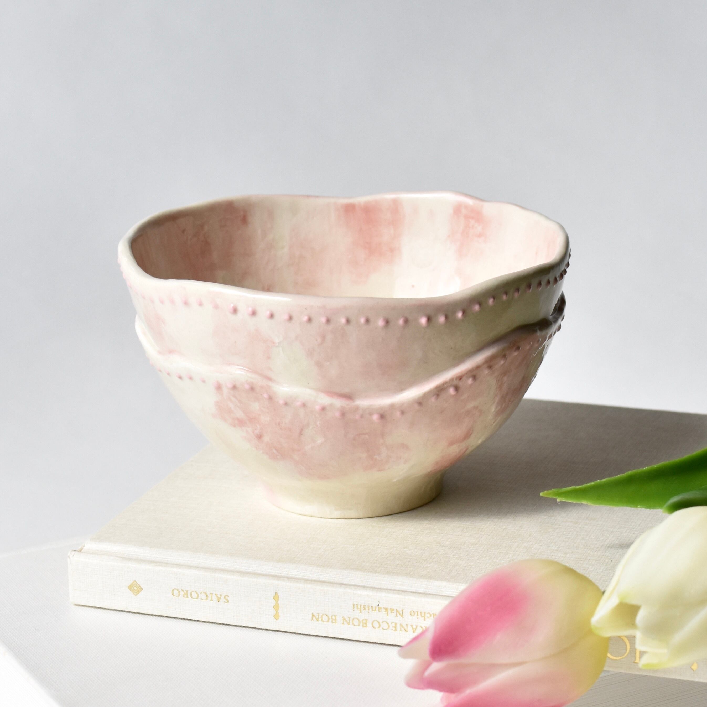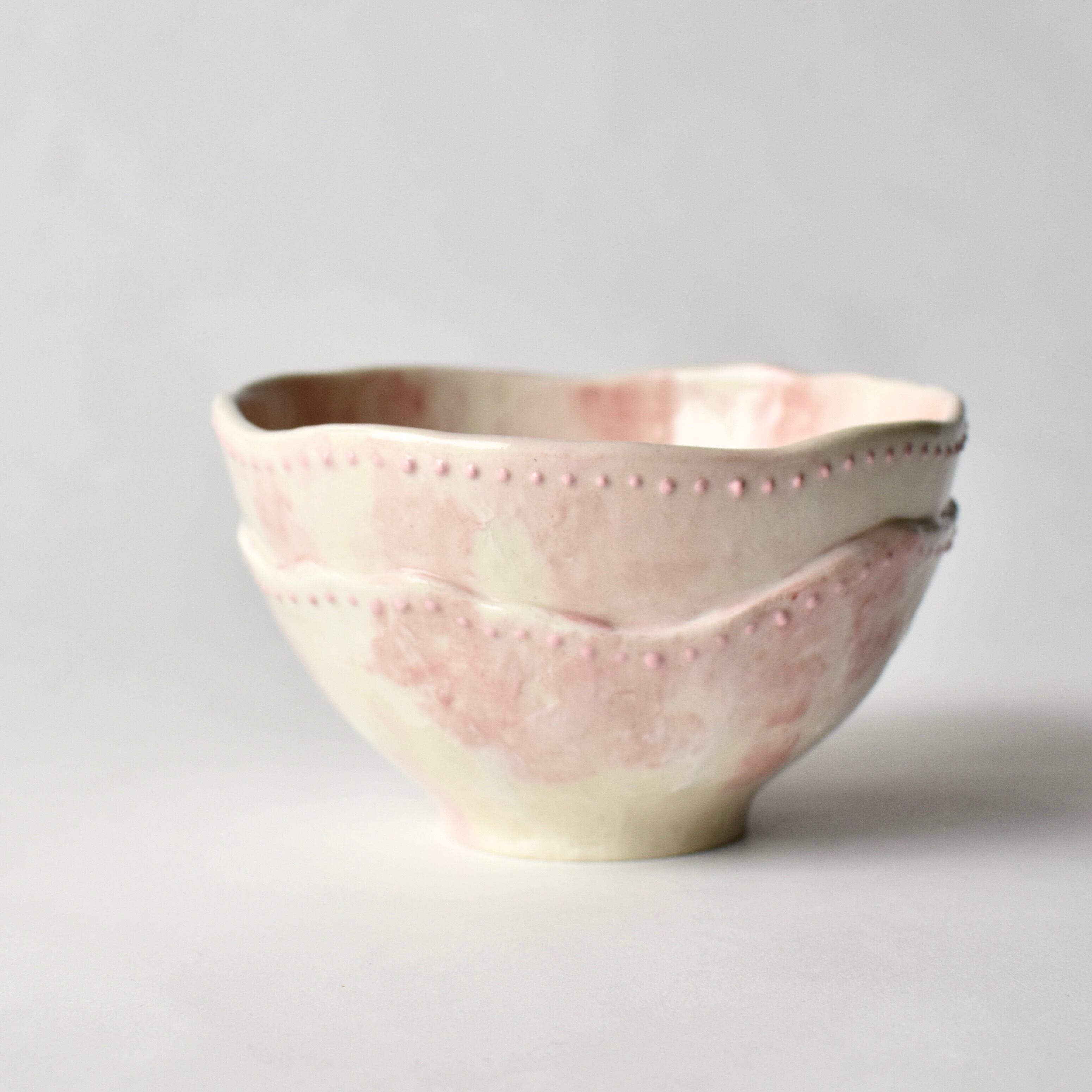 ・焼成の際に土の鉄分が反応し表面に黒い点となって現れることがあります。また、釉薬のかかった器には、ピンでついたような小さな陥没(ピンホール)がみられる事があります。釉薬をかけた際、生地についた有機物が焼かれ小さなへこみとなる現象です。それらは陶器特有の現象であり、味わいのポイントとしてお楽しみください。