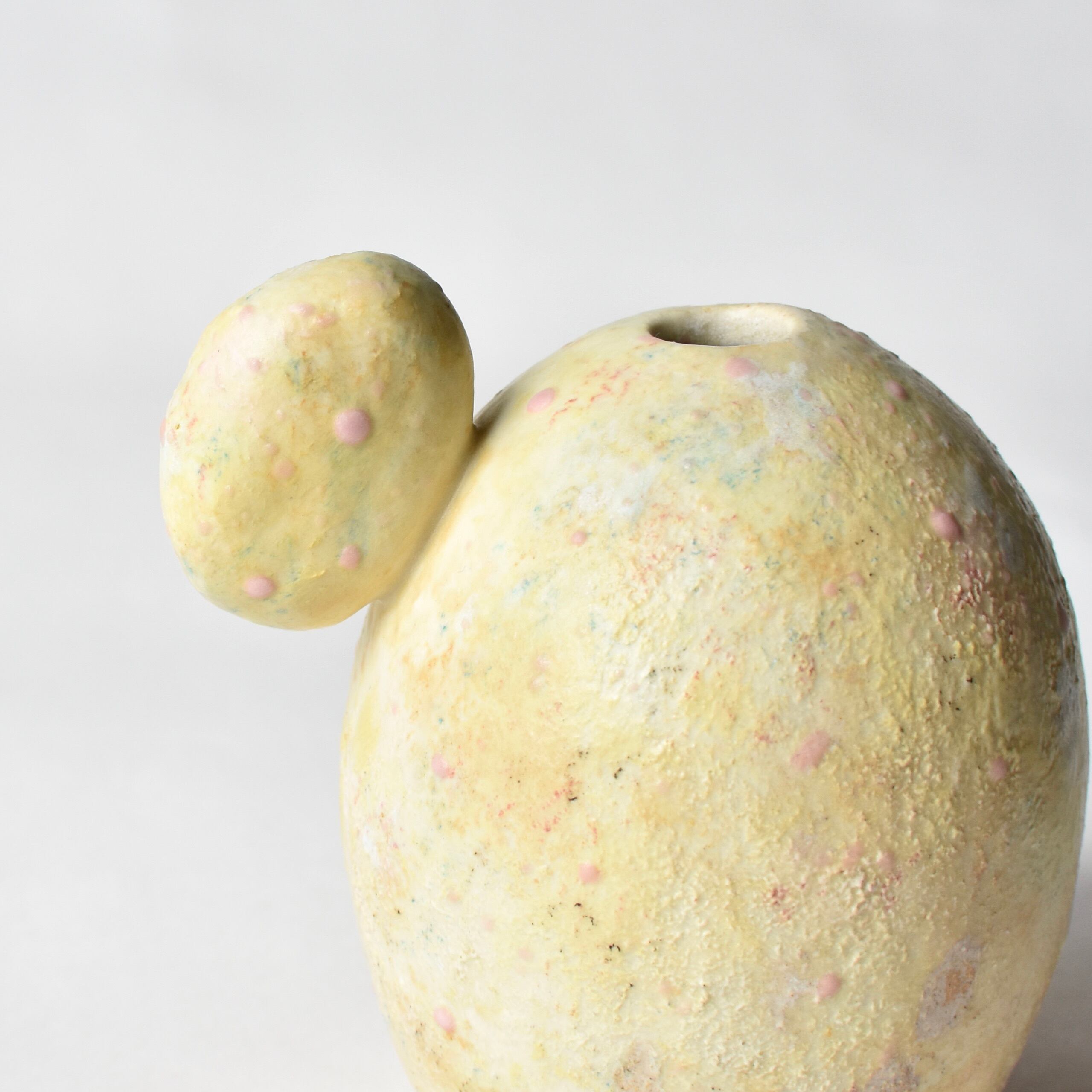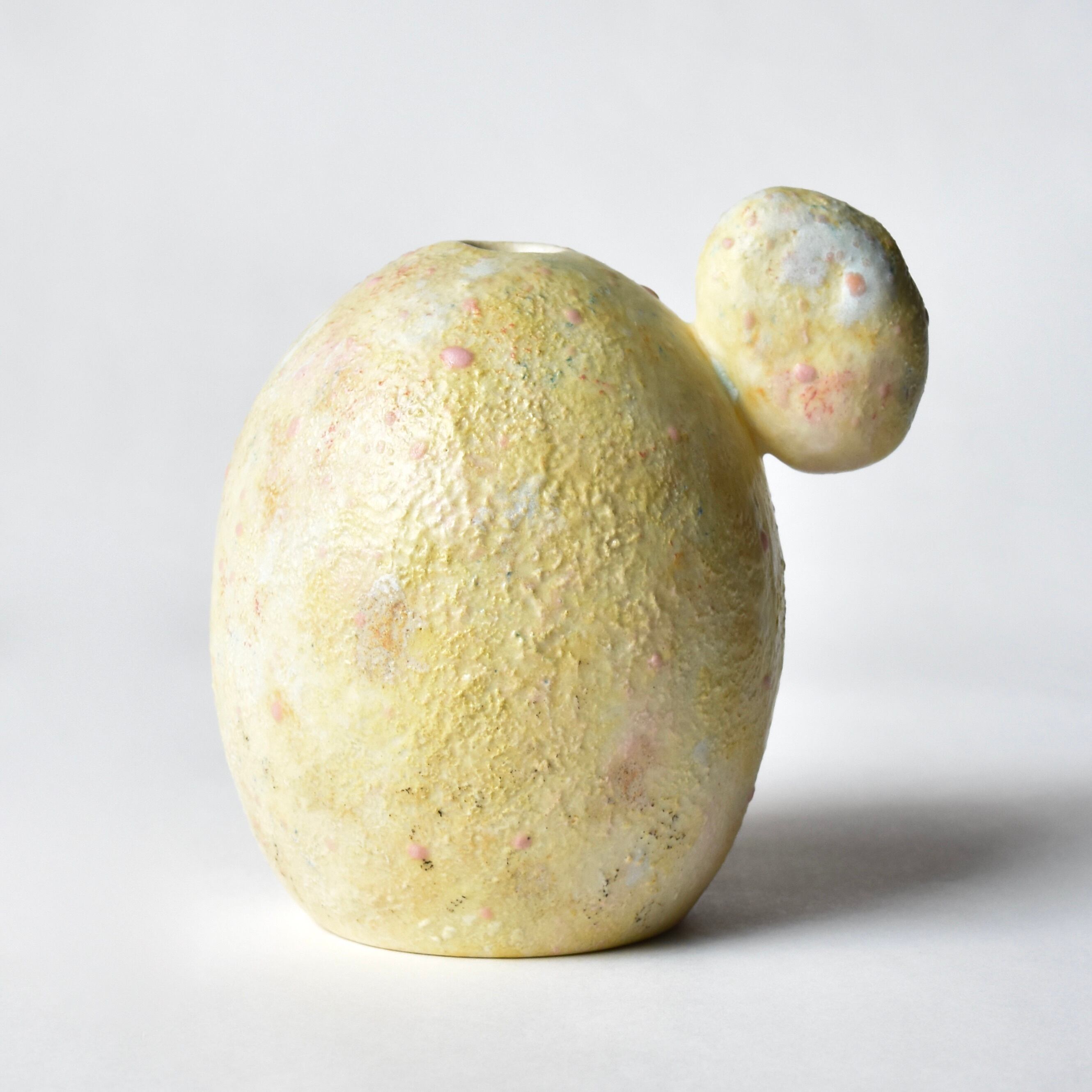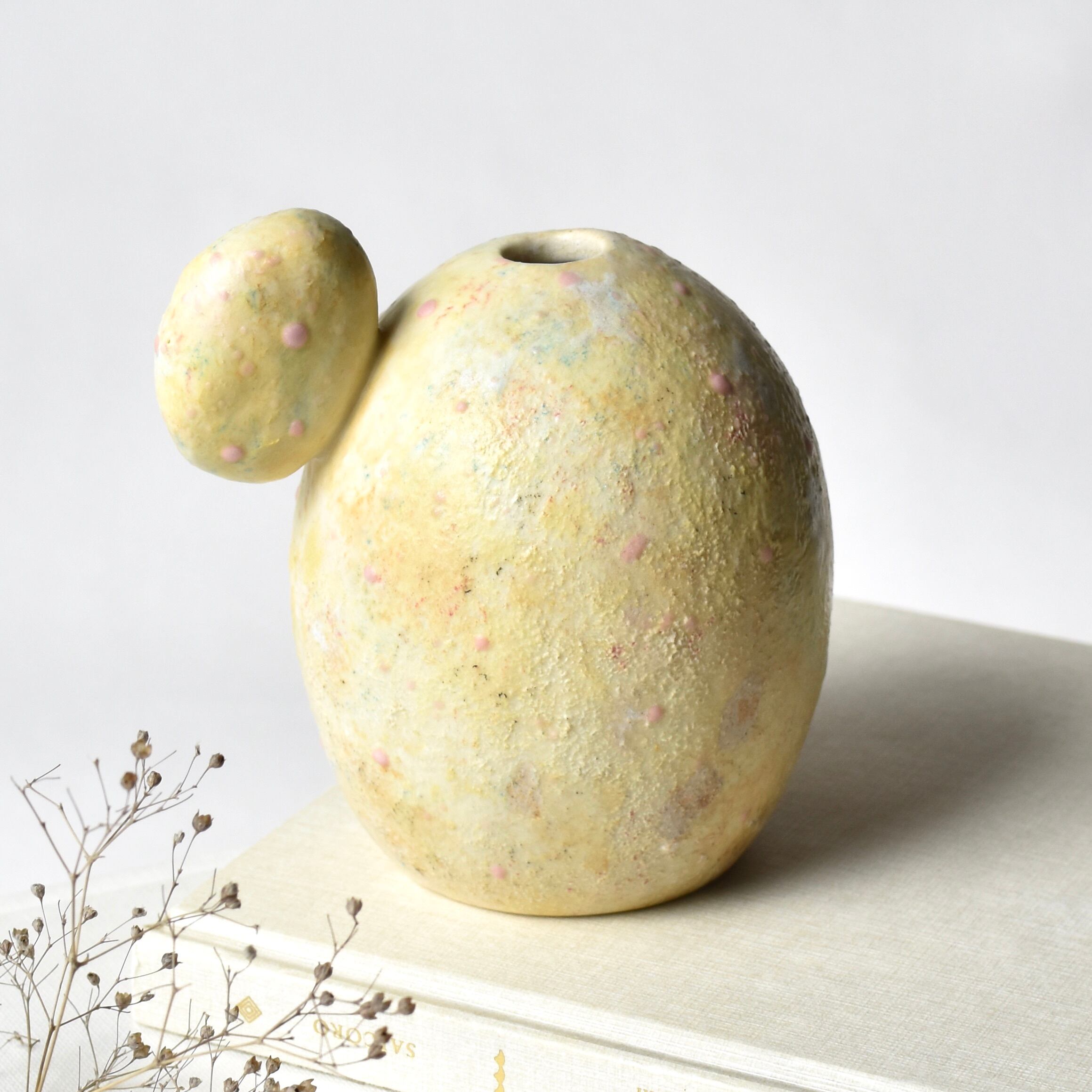 コロンとしたフォルムの花器です。