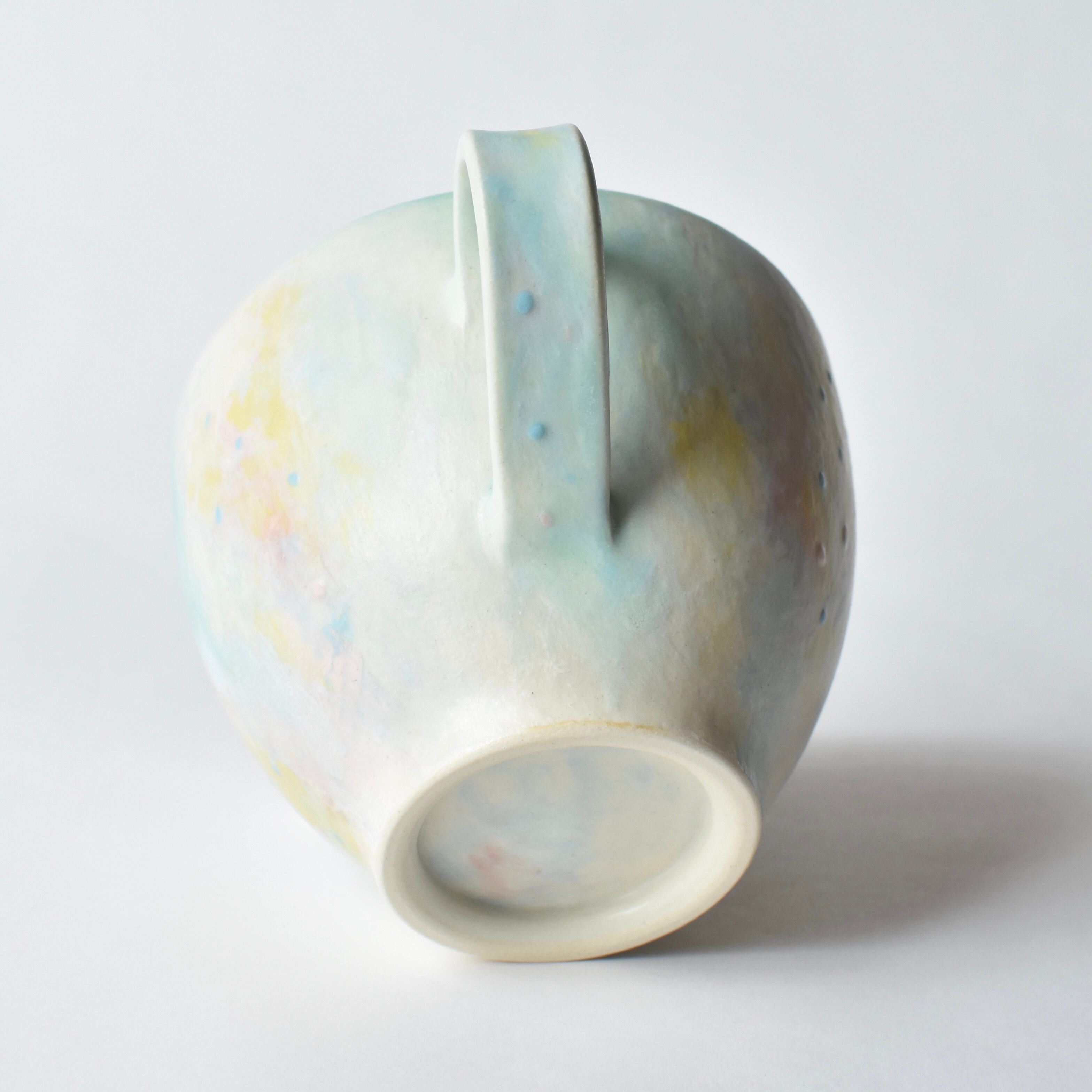 ・焼成の際に土に含まれている鉄分が反応し表面に黒い点となって現れることがあります。また、釉薬のかかった器には、ピンでついたような小さな陥没(ピンホール)がみられる事があります。釉薬をかけた際、生地についた有機物が焼かれ小さなへこみとなる現象です。陶器特有の現象であり、味わいのポイントとしてお楽しみください。
